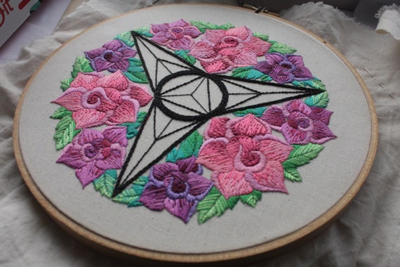Sale Hand Embroidered Tattoo Art Geometric Floral Rose Etsy Uk